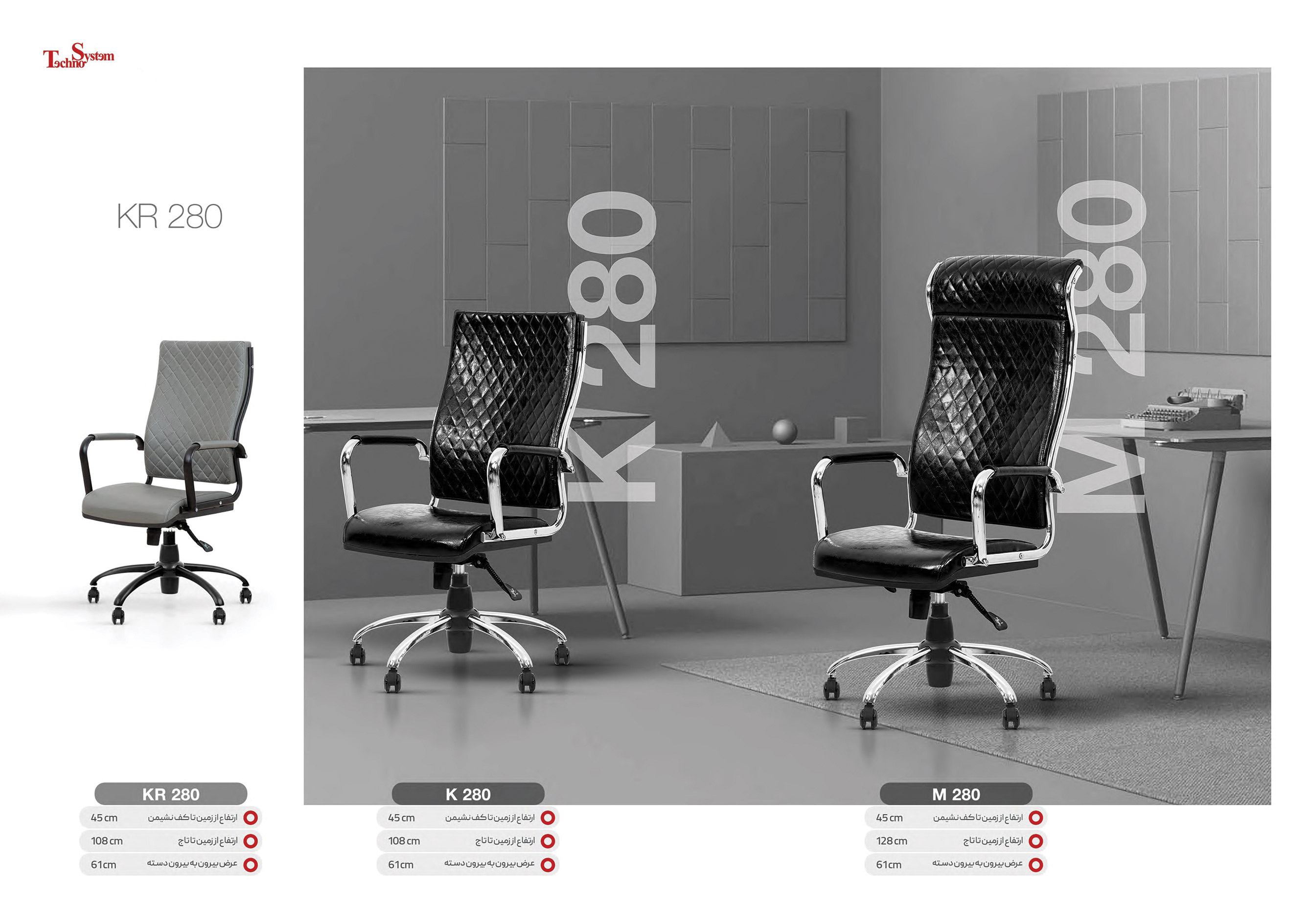 مشخصات فنی صندلی مدیریتی M-280 آبکاری کروم