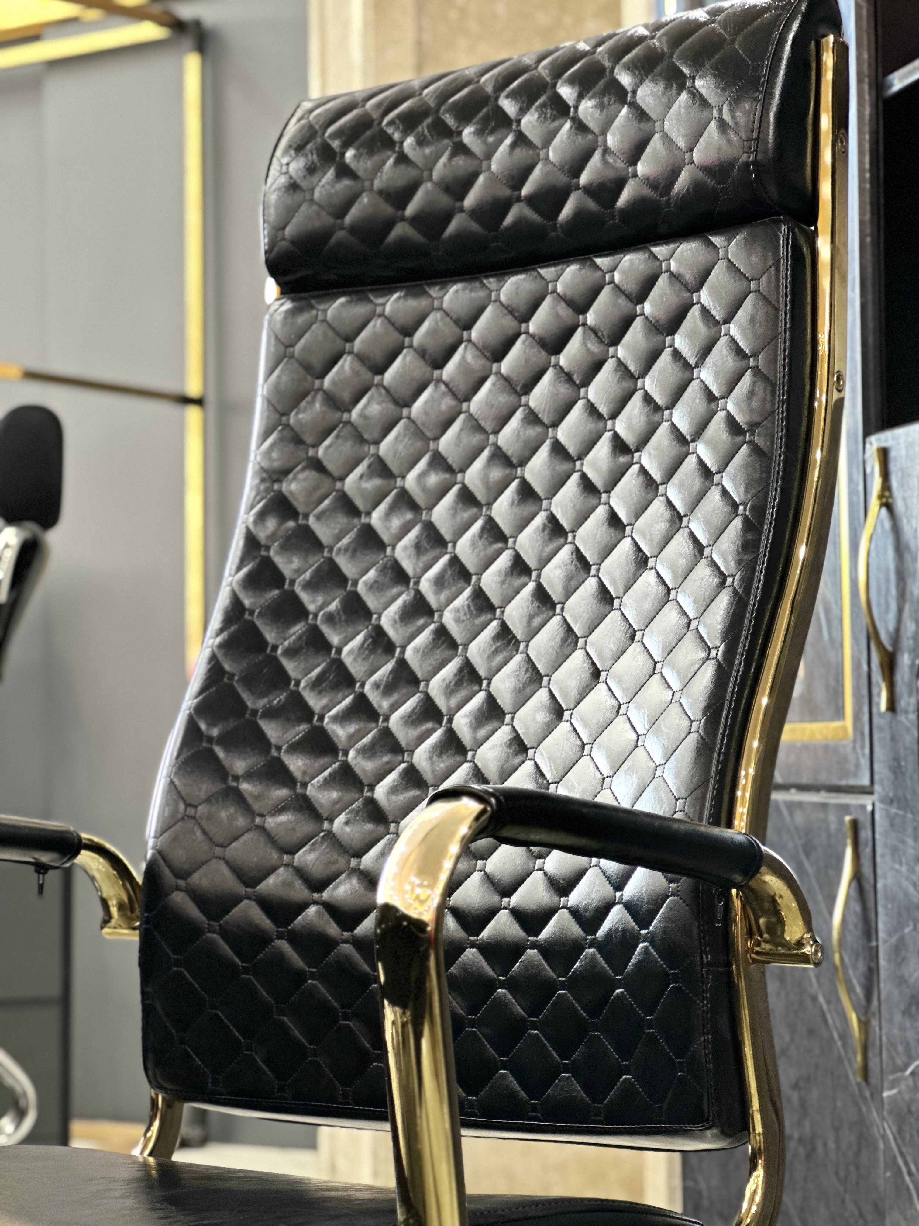 فریمهای جانبی و دستههای این صندلی از فلز با روکش طلایی PVD تولید شدهاند؛ روکش PVD کاملاً مقاوم بوده و هیچگونه تغییر رنگ یا ریزش در طول زمان نخواهد داشت.
