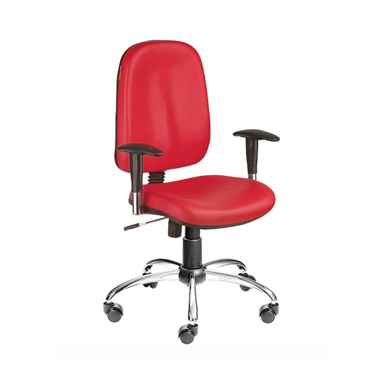 کفی و پشتی این صندلی کارمندی با فوم گرم تولید شده و توسط چرم مصنوعی کاملا پوشانده و جلوه زیبایی را به آن داده است.