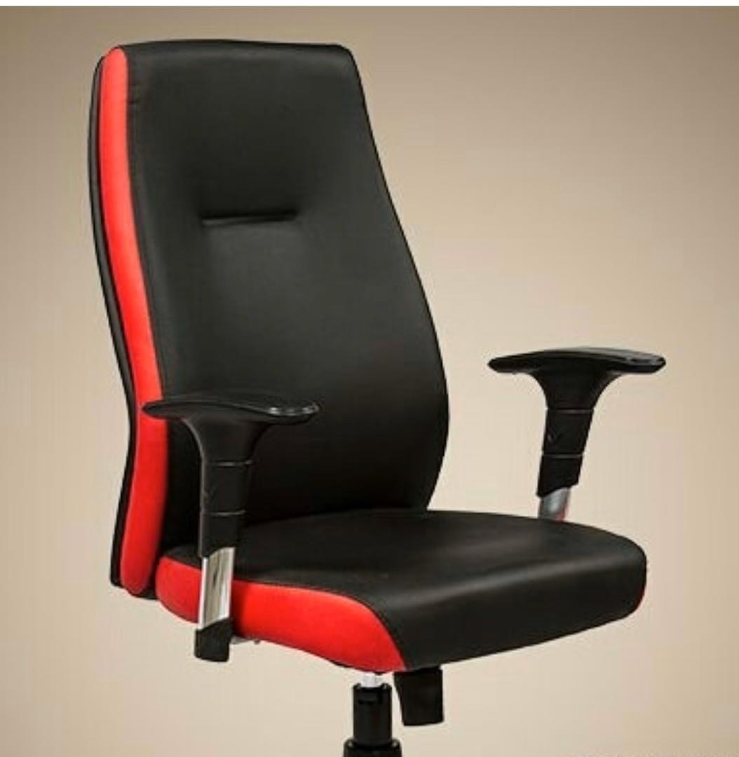 کفی و پشتی این صندلی کارمندی با فوم گرم تولید شده و توسط چرم مصنوعی کاملا پوشانده و جلوه زیبایی را به آن داده است.