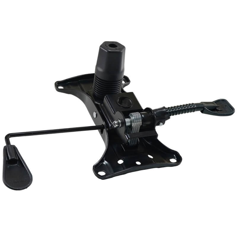 در مکانیزم صندلی اداری اتوبوسی با چرخش اهرم A قادر خواهید بود تا ارتفاع صندلی را مطابق با میل خود تنظیم کنید. در مورد اهرم B نیز، میتوانید کفی و پشتی صندلی را در زاویه مورد نظر خود قفل کنید تا دیگر حرکت مضاعفی نداشته باشد. بدون براکت یا بدون تسمه بودن این مکانیزم باعث میشود تا زمانی که فرد روی آن نشسته و تکیه میدهد، کفی و پشتی همزمان به عقب رانده شوند. زاویهای که در این مکانیزم تغییر میکند 1 تا 12 درجه است. قفل کردن نشیمن و پشتی در چهار حالت، قابل انجام است.