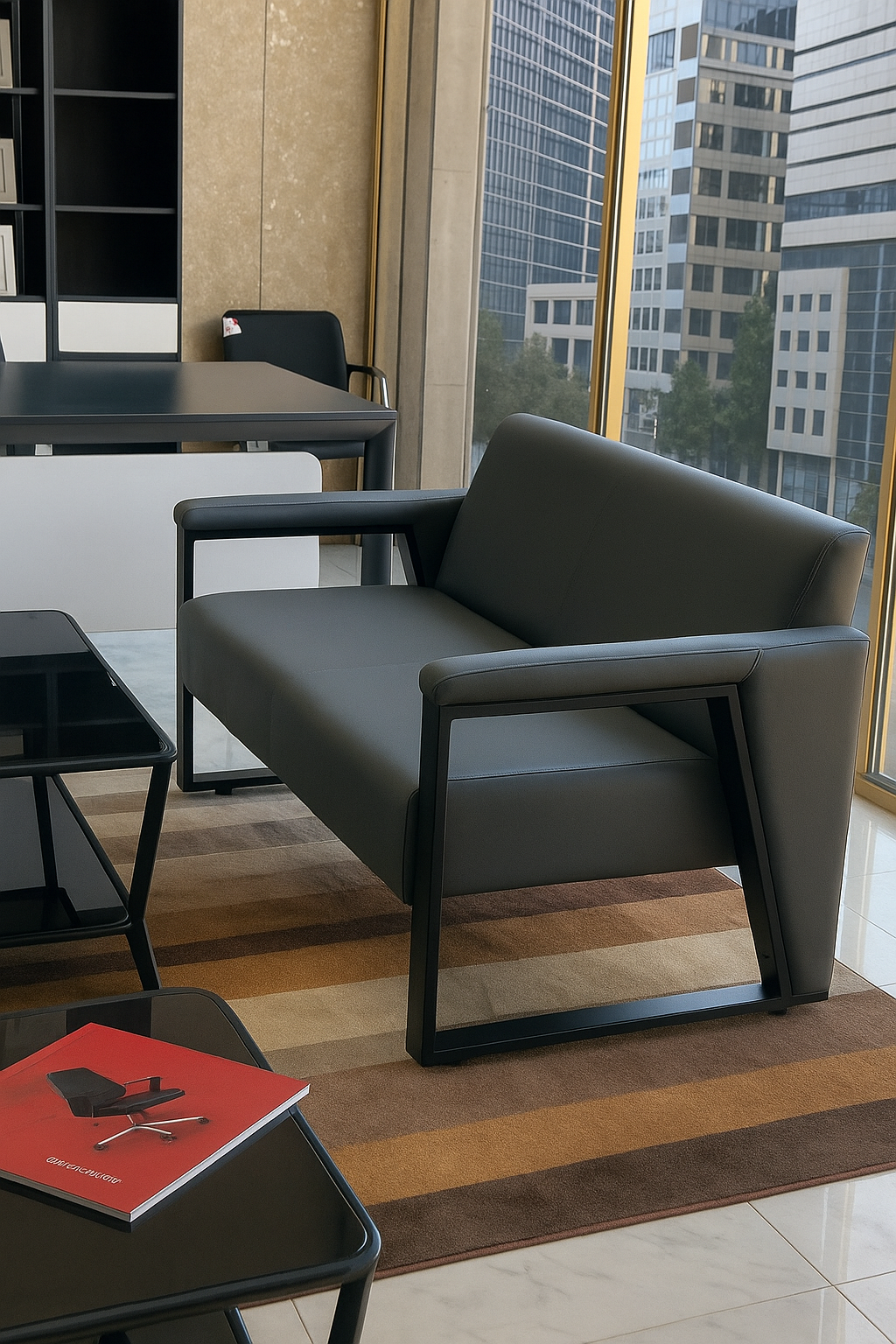 طراحی این مبل تک نفره بهگونهای انجام شده که در عین سادگی، جلوهای شیک و حرفهای به محیط کار ببخشد. پایههای فلزی با فرم زاویهدار، ظاهری مدرن و امروزی ایجاد کرده و باعث میشود این مبل بهراحتی با سایر مبلمان اداری ست شود.
